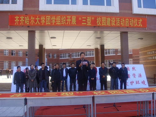 校黨委副書記王鳳琴出席并發(fā)表講話。她講話中回顧了我校多年來(lái)在文化校園建設(shè)中取得的成績(jī),強(qiáng)調(diào)指出當(dāng)前開展“三型校園”建設(shè)活動(dòng),是我校上下深入貫徹落實(shí)科學(xué)發(fā)展觀、全面推進(jìn)高水平大學(xué)建設(shè)的重要舉措,是落實(shí)全省高校黨建會(huì)議精神、加強(qiáng)文化校園建設(shè)的重要載體?!叭托@”建設(shè)進(jìn)一步明確了團(tuán)學(xué)工作的大方向,是高校團(tuán)組織今年乃至今后一個(gè)時(shí)期工作的重要指針。
