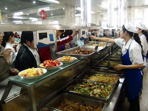 我校一直堅(jiān)持師生參與食品安全監(jiān)督工作。每天都有至少兩名學(xué)生會(huì)權(quán)益部的學(xué)生跟隨采購(gòu)小組參與物資采購(gòu),嚴(yán)把質(zhì)量關(guān);每個(gè)月權(quán)益部都組織學(xué)生到食堂走訪,對(duì)食堂的材料、設(shè)備、食品加工制作流程進(jìn)行監(jiān)督檢查?;锸晨瓶崎L(zhǎng)田麗玲說(shuō),我們的工作目標(biāo)是努力做好全校師生的飲食保障工作,不斷提高服務(wù)水平,真正做到讓師生放心,讓師生滿意。