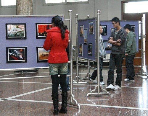 4月1日下午,100多幅精致的攝影作品在齊大的西主陽光大廳展出了, 布展的時候就引來不少路過的同學駐足觀看。這次影展是我校和校外的齊齊哈爾網(wǎng)民論壇合作進行的,作品來自我校師生和論壇上的網(wǎng)民。