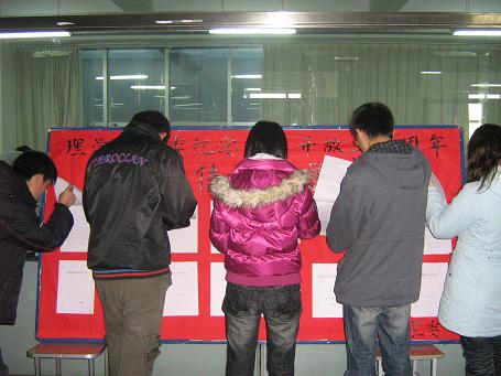 理學(xué)院黨委自11月13日起,在學(xué)生各黨支部中先后舉辦了以“紀(jì)念改革開放三十周年”為主題的征文比賽、 圖片展、參觀和平廣場(chǎng)、座談會(huì)和以“風(fēng)雨征程三十載,揚(yáng)帆逐浪競(jìng)風(fēng)流”為主題的詩會(huì)演講比賽、紀(jì)念改革開放三十年征文佳作展覽活動(dòng)。在此次征文活動(dòng)中,師生共提交征文103篇,展出佳作40篇;征文從教育、航天、衛(wèi)生、環(huán)境、經(jīng)濟(jì)等多角度出發(fā),描繪了一幅改革開放三十年的發(fā)展圖。通過系列主題黨日活動(dòng),使學(xué)生黨員受到了教育、得到了鍛煉,大家紛紛表示要以身作則,積極發(fā)揮黨員的先鋒模范帶頭作用,踐行自己的承諾,為學(xué)校學(xué)院又好又快發(fā)展貢獻(xiàn)自己的力量,為將來奉獻(xiàn)社會(huì)打好基礎(chǔ)。