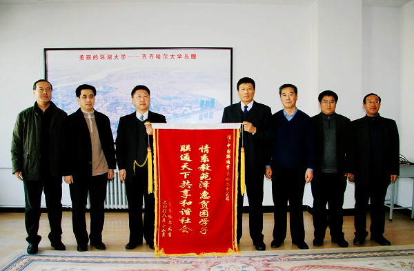 為支持和促進(jìn)高等教育事業(yè)的發(fā)展,中國聯(lián)通齊齊哈爾分公司干部職工再次為我校捐資10萬元人民幣,設(shè)立專項(xiàng)獎(jiǎng)學(xué)金,用于獎(jiǎng)勵(lì)和幫助思想進(jìn)步、學(xué)業(yè)優(yōu)異、家庭經(jīng)濟(jì)困難學(xué)生順利完成學(xué)業(yè)。
