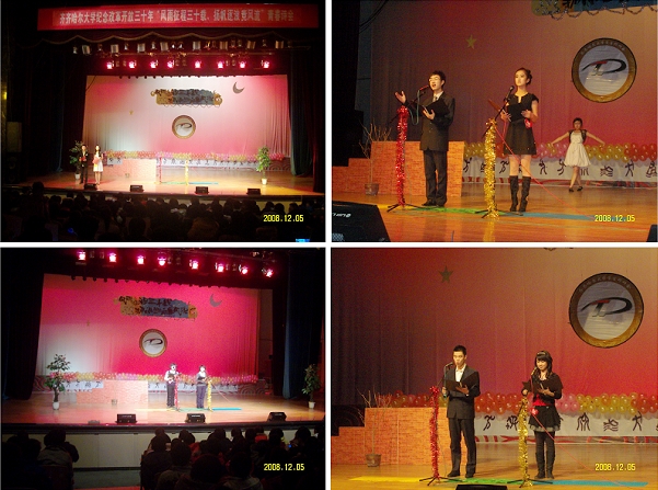 為紀(jì)念改革開(kāi)放三十周年,增強(qiáng)大學(xué)生的愛(ài)國(guó)熱情,豐富大學(xué)生的課余生活,12月5日,我校紀(jì)念改革開(kāi)放三十年“風(fēng)雨征程三十載,揚(yáng)帆逐浪競(jìng)風(fēng)流”青春詩(shī)會(huì)在中區(qū)文化宮舉行。