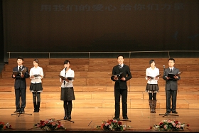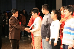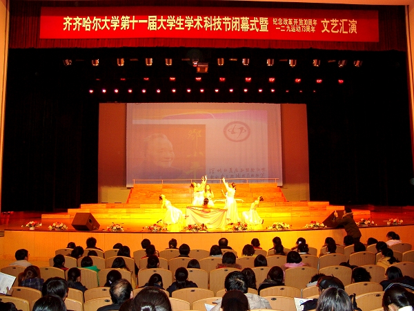 閉幕式結束后,出席會議的校領導和師生們一起觀看了紀念改革開放三十周年、紀念一二?九運動七十三周年文藝匯演。參加演出的節(jié)目均由我校師生自編自演,這些節(jié)目熱情頌揚改革開放三十年以來的偉大成就,謳歌我黨帶領全國人民進行改革開放的歷史功勛,充分反映了我校校園文化建設的最新成果,展示了我校廣大師生的精神面貌,表達了當代大學生牢記青年的歷史使命,信心百倍跟黨走的堅定信念。