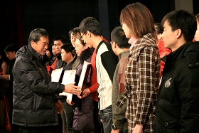 閉幕式上,副校長姜守訓宣讀了《齊齊哈爾大學第十一屆大學生學術科技節(jié)各項競賽獲獎集體和個人名單》,對在本屆科技節(jié)中表現(xiàn)突出的科技活動先進集體和個人進行了命名表彰。出席大會的校領導分別為獲獎集體和個人頒發(fā)了證書和獎狀。