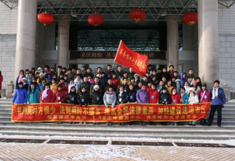 弘揚(yáng)法治精神,服務(wù)科學(xué)發(fā)展。為了貫徹黨的十七大精神,抓好“五五”普法規(guī)劃的落實(shí),2008年12月4日,在校黨委宣傳部、校團(tuán)委及法學(xué)會會長呂途副教授的領(lǐng)導(dǎo)下,齊齊哈爾大學(xué)法學(xué)會與黑龍江銘昊律師事務(wù)所以及184法律服務(wù)中心合作進(jìn)行了“12.4普法宣傳”活動,獲得了廣大市民和同學(xué)們的一致好評。