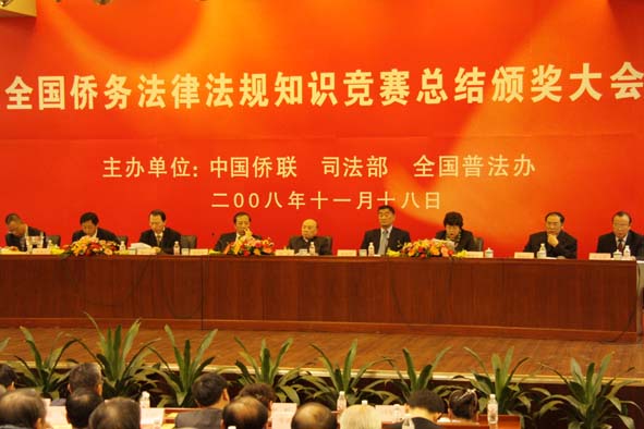 由中國(guó)僑聯(lián)、司法部和全國(guó)普法辦聯(lián)合組織主辦的僑務(wù)法律法規(guī)有獎(jiǎng)知識(shí)競(jìng)賽在全國(guó)引起積極反響,主辦單位于11月18日在北京舉行了本次競(jìng)賽的總結(jié)頒獎(jiǎng)大會(huì)。司法部副部長(zhǎng)、全國(guó)普法辦副主任張?zhí)K軍、中國(guó)僑聯(lián)副主席林淑娘、中國(guó)僑聯(lián)副主席李祖沛、董中原、中國(guó)僑聯(lián)法顧委主任鄒瑜等參加會(huì)議,對(duì)參加“僑務(wù)法律法規(guī)有獎(jiǎng)知識(shí)競(jìng)賽”的獲獎(jiǎng)單位進(jìn)行了通報(bào)表彰。