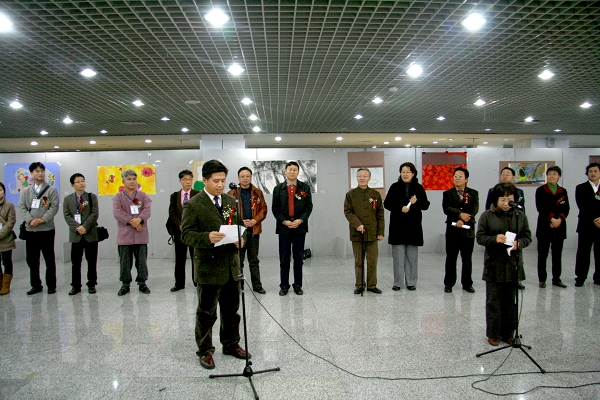 韓國朝鮮大學(xué)校美術(shù)大學(xué)美術(shù)部主任金鍾京教授、我校藝術(shù)學(xué)院宗明明院長分別致辭。出席開幕式的領(lǐng)導(dǎo)和嘉賓共同為展覽開幕剪彩。