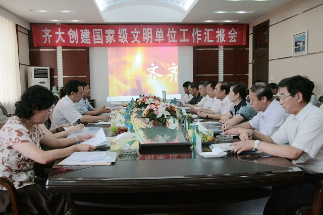 8:30,考核組一行首先在我校中區(qū)辦公樓504會議室召開了“齊齊哈爾大學創(chuàng)建國家級文明單位工作匯報會”。
