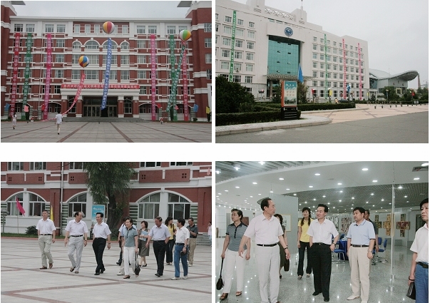 9:10,在中區(qū)教學樓廣場前,考核組全體成員與校領導合影留念。
