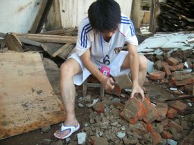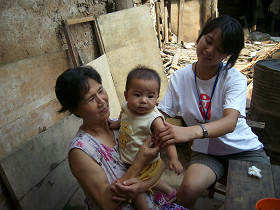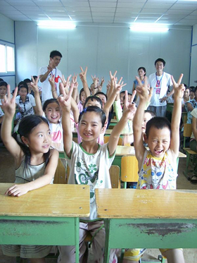 志愿者們的辛勤付出,收獲了災(zāi)區(qū)學(xué)生的感動(dòng)。7月28日早上,原本晴朗的天氣突然下起了暴雨。急促的雨水把正在上學(xué)路上的蒲芬芬、洪曉靜、楊梅三位初三年級(jí)的同學(xué)澆得渾身濕透,但是她們沒有回去,冒雨來(lái)到了學(xué)校。她們?nèi)煌瑢W(xué)都來(lái)自于距離龍?jiān)粗袑W(xué)四十里以外的寶泉村,平常在學(xué)校寄宿。暑假這段時(shí)間,為了要趕上早上八點(diǎn)半上課,早上5點(diǎn)她們就必須起床然后一路爬坡、過(guò)河,要走兩個(gè)小時(shí)才能到達(dá)學(xué)校,下午放學(xué)后再步行兩個(gè)多小時(shí)回家。當(dāng)志愿者問(wèn)她們?yōu)槭裁聪逻@么大的雨還要堅(jiān)持來(lái)上課的時(shí)候,羞怯淳樸的小姑娘說(shuō):“只要我們能從老師那里學(xué)到東西,無(wú)論有多大雨我們都會(huì)一起來(lái)的”。