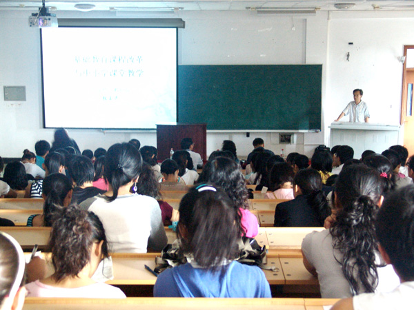 張玉民教授在講座中主要介紹了我國基礎(chǔ)教育課程改革的背景,解讀了基礎(chǔ)教育課程改革的具體目標,介紹了新課程實施帶來的課堂教學(xué)新變化。張教授還結(jié)合新課程實際課堂教學(xué)的案例,介紹了如何落實新課程的三位課程目標,實現(xiàn)學(xué)生主動探究合作的學(xué)習(xí),以及建構(gòu)主義學(xué)習(xí)理論指導(dǎo)下的新的課堂教學(xué)結(jié)構(gòu)。