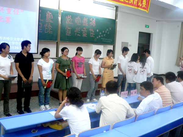 6月24 日晚,由校團(tuán)委主辦,校學(xué)生會(huì)承辦的“弘揚(yáng)抗震救災(zāi)精神,勇?lián)褡鍙?fù)興重任”主題演講比賽在中主階梯201教室舉行,校團(tuán)委趙振華、馮占元、社科部王圣禎、 學(xué)生科科長張樹啟、就業(yè)管理科科長郭勇等老師出席比賽并擔(dān)任評(píng)委。此次演講比賽以學(xué)院為單位,經(jīng)過初賽共十四名選手參加決賽。
