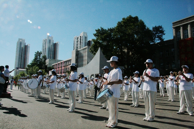 圣火點燃奧運夢想,音樂助威奧運盛會。在我校師生助威火炬?zhèn)鬟f的東區(qū)校門外的現(xiàn)場,由108名學(xué)生組成的大規(guī)模管樂隊吹響號角,敲起鑼鼓,為奧運加油。在迎接儀式上,他們演奏了《歌唱祖國》、《紅太陽》等節(jié)奏歡快的曲目,表達(dá)喜迎圣火的喜悅和對北京奧運的美好祝福。