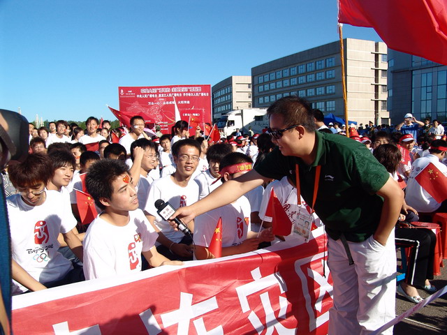 在火炬?zhèn)鬟f起點儀式上,中央電視臺記者對我校現(xiàn)場助威的機械工程學(xué)院的同學(xué)進行了采訪。