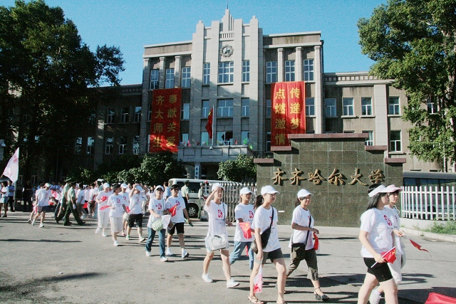 “祥云”火炬齊齊哈爾傳遞起點在黨政辦公中心廣場,終點是勞動湖音樂廣場,傳遞全程為7.5公里,208名火炬手參加了圣火傳遞。手手手相傳,一朵朵祥云升起,一團團圣火燃起,一面面五環(huán)旗幟揚起,點燃了師生心中的希望和向往;一面面五星紅旗,照亮了師生心中的熱情與夢想。