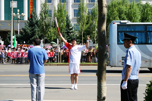 “中國加油!奧運加油!北京加油!”8時許,當(dāng)宣布北京2008奧運火炬接力齊齊哈爾傳遞活動開始時,全場沸騰。師生們競相揮舞著手中的國旗和奧運會會旗,吶喊聲此起彼伏,現(xiàn)場氣氛熱烈。第一棒火炬手劉艷手持火炬,與護跑手會合起跑,開始了奧運圣火在齊齊哈爾的“和諧之旅”。