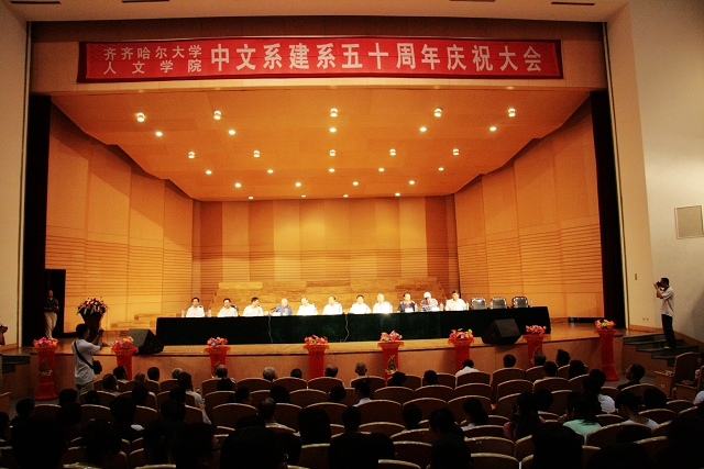 我校黨委副書記史鐵成的題詞是:“五十載傳承國學(xué)精粹 展學(xué)壇英采 半世紀(jì)弘揚(yáng)民族文化 育桃李芬芳”。副校長鄭喜群的題詞是:“一腔熱血育高才 滿園桃李譜華章”。副校長鄧啟剛同志的題詞是:“銳意進(jìn)取 多結(jié)社科研究碩果 繼往開來 大展齊大人文風(fēng)采”。工會主席呂曉輝同志的賀詞:“傳承文明 再創(chuàng)輝煌”。我校黨委宣傳部的賀詞是:“五十載辛勤耕耘 半世紀(jì)傾情奉獻(xiàn)”;教務(wù)處的賀詞是:“傳承民族文化 培養(yǎng)創(chuàng)新人才”。實踐教學(xué)與設(shè)備管理處的賀詞是:“學(xué)高身正 碩果滿園;春華秋實 桃李四方”。科技處的賀詞是:“求實創(chuàng)新 科教興文”。離退休工作處的賀詞是:“人文的薪火 心靈的驛站”。人文學(xué)院的賀詞是:“杏壇設(shè)教五十載 桃李花開春滿園”。外語學(xué)院的賀詞是:“十年樹木 百年樹人 言傳身教 桃李芬芳”。教育與傳媒學(xué)院賀詞是:“五十年春風(fēng)催桃李 半世紀(jì)丹心育英才”。繼續(xù)教育學(xué)院的賀詞是:“半世耕耘 桃李芬芳 篤行不倦 再創(chuàng)輝煌”。歷史系的賀詞是:“耕耘五十載 桃李滿天下”。哲學(xué)與社會工作系的賀詞是:“丹心育棟梁 碧血鑄春秋”。政治系的賀詞是:“育英才前赴后繼 創(chuàng)佳績輝煌五十年”。中文系首屆畢業(yè)生石永春的賀辭是:“文苑龍沙五十秋,征程無處不風(fēng)流。寒窗冷月勤研教,暑案炎天解惑籌。播種九州桃李滿,揚(yáng)帆四海棟梁遒。焚膏繼晷傳薪火,再展宏圖上錦樓。人文學(xué)院院長王則遠(yuǎn)出差在外,委托黨委書記卜春江、副院長姜波轉(zhuǎn)達(dá)他對出席中文系慶典的嘉賓、校友、離退休老教師及全體師生的誠摯問候與良好祝愿。