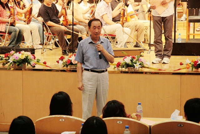 師生聯(lián)誼活動(dòng)中,我校校長(zhǎng)唱江華教授親自執(zhí)琴,演奏了小提琴協(xié)奏曲《梁山伯與祝英臺(tái)》,贏得了全場(chǎng)的熱烈掌聲。
