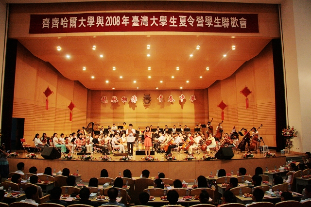 聯(lián)誼會(huì)上,2008臺(tái)灣大學(xué)生夏令營(yíng)黑龍江省分營(yíng)全體營(yíng)員聆聽(tīng)了我校交響樂(lè)團(tuán)排練演出的交響組曲《蘇三》、管弦樂(lè)曲《雷鳴電閃波爾卡》等;兩岸大學(xué)生一起聯(lián)誼表演了臺(tái)灣原住民舞蹈、合唱了《朋友》,群體合唱了《外婆的澎湖灣》。來(lái)自臺(tái)灣的大學(xué)生獻(xiàn)上了笛子獨(dú)奏《掛紅燈》、口技表演等精彩的節(jié)目。我校師生獻(xiàn)上了女聲獨(dú)唱《一個(gè)真實(shí)的故事》、男聲獨(dú)唱《我的太陽(yáng)》以及太極武術(shù)表演等精彩紛呈的節(jié)目。兩岸師生載歌載舞,聯(lián)誼聯(lián)歡,始終洋溢著濃濃的親情和深深的友情。