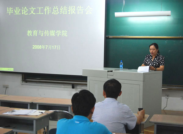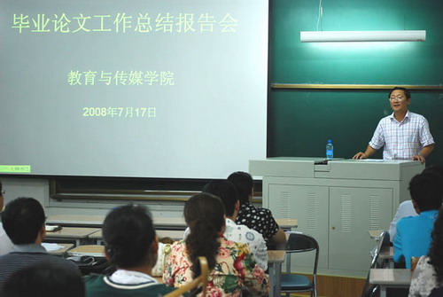 7月17日下午,教育與傳媒學(xué)院在28教317教室舉行了2008屆學(xué)生畢業(yè)論文總結(jié)報告會。學(xué)院黨委書記關(guān)晞昕、院長李虹、副院長赫牧寰及學(xué)院全體教師參加了此次報告會,實踐教學(xué)與設(shè)備管理處處長張德慶出席了本次會議。