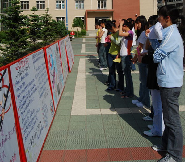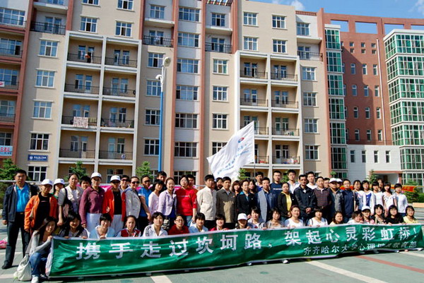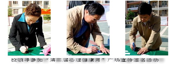 校黨委副書記王鳳琴、副校長姜守訓、副校長鄭喜群以及黨委宣傳部長李敏義、教務處長李英杰、指導中心副主任吳剛等出席宣傳活動并參加了主題為“攜手走過坎坷路,架起心靈彩虹橋”的大型簽名活動。