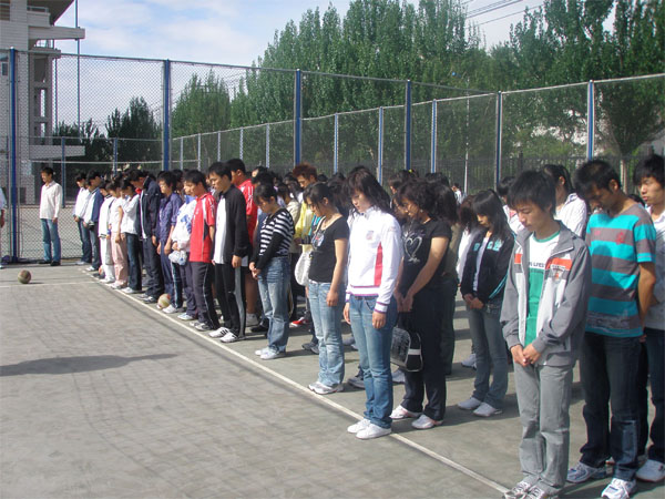 賽前,在場全體師生默哀一分鐘,悼念在“5?12”汶川地震中遇難的同胞。校團委趙振華老師主持儀式并講話,學生代表校學生會副主席楊大鵬同學作了發(fā)言,倡議同學們情系災(zāi)區(qū),眾志成城,抗震救災(zāi),要化悲痛為力量,與全國人民一道,竭力支援災(zāi)區(qū)人民重建家園,把我們的國家建設(shè)得更加強大,更加美好!要求同學們努力學習、為維護校園和諧和穩(wěn)定盡一份力量。