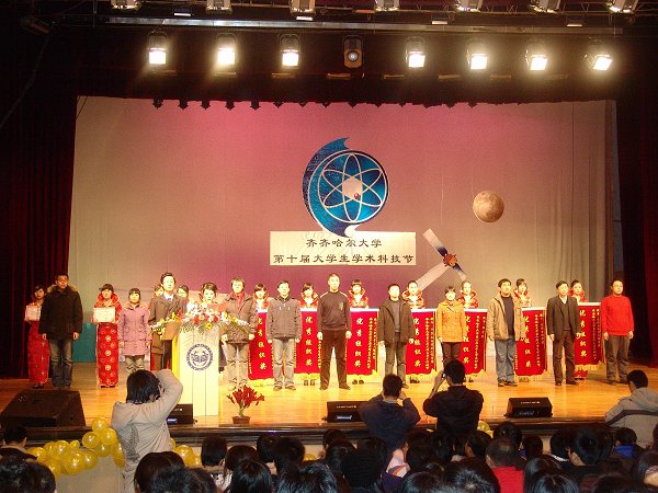 閉幕式上,副校長姜守訓(xùn)宣讀了《齊齊哈爾大學(xué)第十屆大學(xué)生學(xué)術(shù)科技節(jié)各項(xiàng)競賽活動(dòng)獲獎(jiǎng)集體和個(gè)人名單》和《2007年度在全國、全省大學(xué)生學(xué)術(shù)競賽活動(dòng)中獲獎(jiǎng)集體和個(gè)人名單》,對在本屆科技節(jié)中表現(xiàn)突出的科技活動(dòng)先進(jìn)集體和個(gè)人進(jìn)行了命名表彰。我校王曉宇等40余名學(xué)生個(gè)人、近120個(gè)學(xué)生團(tuán)隊(duì)分獲“求知?探索?創(chuàng)新”大學(xué)生科技論壇、“科技之星”大學(xué)生知識與創(chuàng)意能力大賽、大學(xué)生創(chuàng)業(yè)計(jì)劃大賽等活動(dòng)的各類獎(jiǎng)項(xiàng);通信與電子工程學(xué)院、經(jīng)濟(jì)管理學(xué)院、理學(xué)院、計(jì)算機(jī)與控制工程學(xué)院、生命科學(xué)與工程學(xué)院、應(yīng)用技術(shù)學(xué)院、化學(xué)與化學(xué)工程學(xué)院、人文學(xué)院獲得本屆科技節(jié)“優(yōu)秀組織獎(jiǎng)”榮譽(yù)稱號。