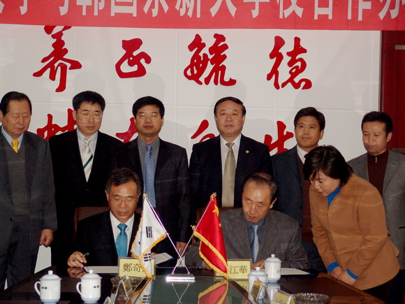 我校校長唱江華、副校長曲偉建、鄭喜群出席合作辦學工作會議,教務處處長李英杰、外事處副處長郭寒竹、王忠申、我校駐韓國聯(lián)絡處主任張琪德先生等參加了會見及簽字儀式。