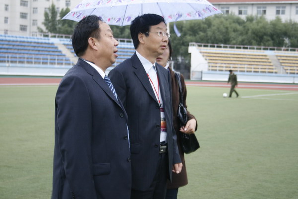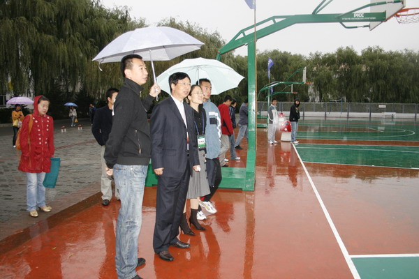 9月26日6時(shí)30分,評(píng)估專家王立新教授來(lái)到我校西區(qū)體育場(chǎng)和中區(qū)籃球場(chǎng)考察學(xué)生晨練活動(dòng)。