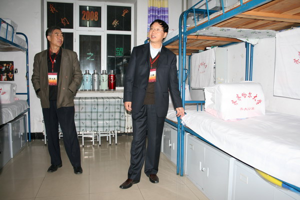 9月26日19時20分,評估專家王立新教授、邢永昌教授考察我校學(xué)生宿舍及自習(xí)情況。兩位專家先后考察了13號及15號學(xué)生宿舍樓,在學(xué)生寢室與學(xué)生進行了交流。