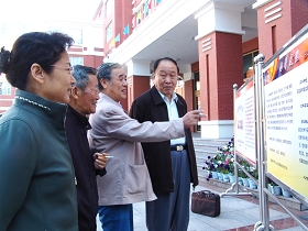 9月21日上午10:00,黑龍江省老科協(xié)常務(wù)副會(huì)長(zhǎng)、原省教育廳副廳長(zhǎng)童明英老先生來(lái)訪我校。我校黨委副書記王鳳琴,老科協(xié)會(huì)長(zhǎng)張?jiān)俊⒏睍?huì)長(zhǎng)薛秉昌親自在校門口迎接童老先生的到來(lái)并在校門口鐫刻有我校校訓(xùn)的巨石前合影留念。