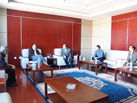我校校長(zhǎng)唱江華在中區(qū)行政樓會(huì)客室與童明英老先生進(jìn)行了熱情洋溢的會(huì)談。校領(lǐng)導(dǎo)王鳳琴、張學(xué)軍,老科協(xié)會(huì)長(zhǎng)張?jiān)俊⒏睍?huì)長(zhǎng)薛秉昌參加了會(huì)談。唱校長(zhǎng)對(duì)童明英老先生的到來(lái)表示熱烈歡迎,對(duì)他對(duì)于我校一如既往的關(guān)注與支持表示感謝。唱校長(zhǎng)還向童明英老先生介紹了我校迎接教育部本科教學(xué)水平評(píng)估的工作開展情況。