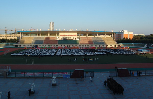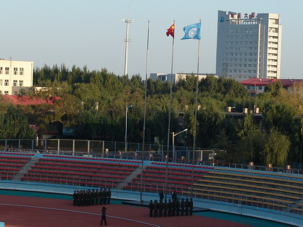 9月24日6:20,在我校西區(qū)體育場舉行了新生軍訓(xùn)項(xiàng)目之一的愛國主義教育活動——升國旗儀式。5800余名07級新生參加了升旗儀式。