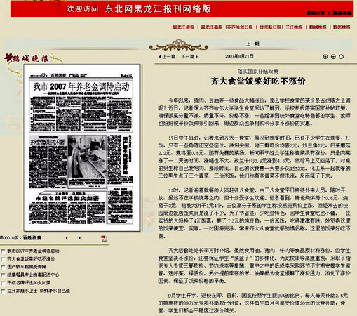 編者按:新學(xué)期初以來(lái),在豬肉、豆油等一些食品大幅漲價(jià)的情況下,我校積極采取有效措施,認(rèn)真落實(shí)國(guó)家補(bǔ)貼政策,確保飯菜分量不減,質(zhì)量不降,價(jià)格不漲,以惠及師生的實(shí)際舉措為構(gòu)建和諧校園貢獻(xiàn)力量。8月21日出版的《鶴城晚報(bào)》以《落實(shí)國(guó)家補(bǔ)貼政策 齊大食堂好吃不漲價(jià)》為題對(duì)我校給予了熱忱報(bào)道。