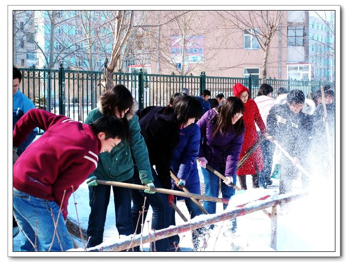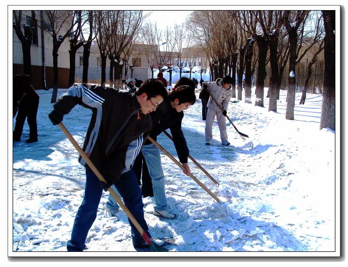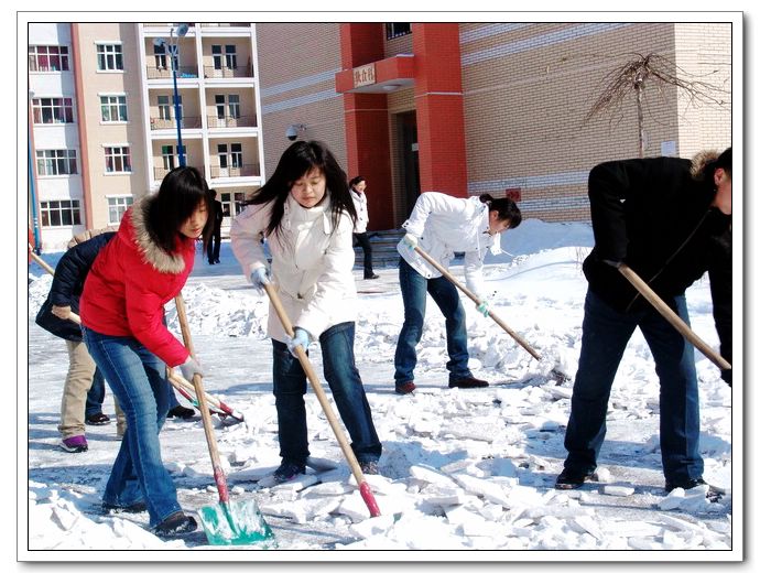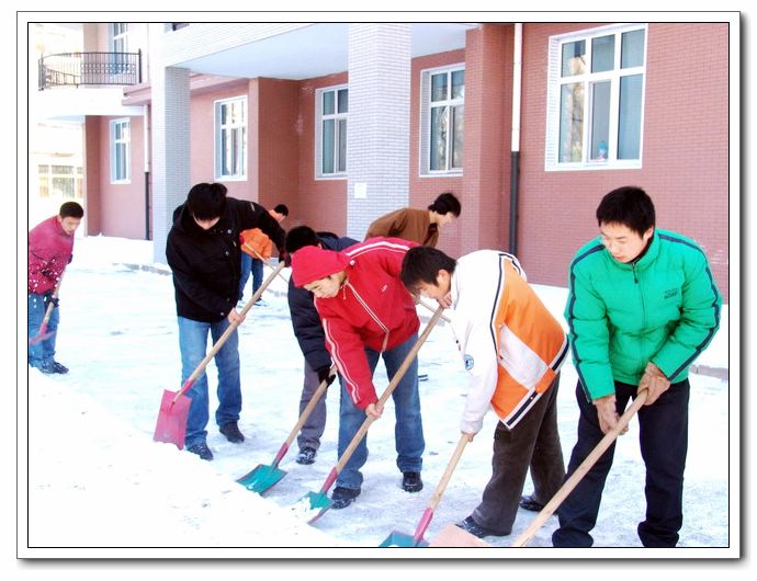 3月10日上午,我校以雪為令,萬名師生積極投身到清理校園積雪活動。后勤處統(tǒng)籌協(xié)調(diào),科學(xué)部署;各院(系)領(lǐng)導(dǎo)高度重視,精心組織;學(xué)生干部以身作則,黨團員充分發(fā)揮先鋒模范作用,廣大師生積極參加,春日的校園里到處都是廣大師生清冰運雪的忙碌身影。