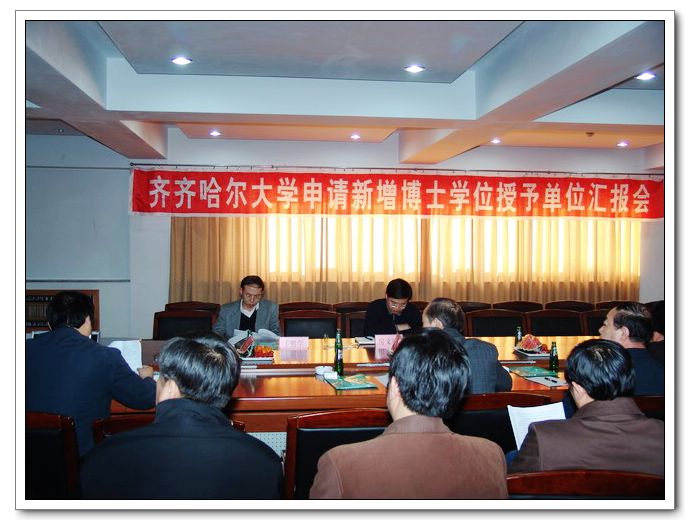 我校在培訓(xùn)中心五樓會(huì)議室召開了“齊齊哈爾大學(xué)新增博士單位工作匯報(bào)會(huì)”,校領(lǐng)導(dǎo)唱江華、曲偉建、鄭喜群、鄧啟剛出席匯報(bào)會(huì),研究生處、科技處負(fù)責(zé)人和各有關(guān)學(xué)院院長(zhǎng)、學(xué)科帶頭人參加了會(huì)議。