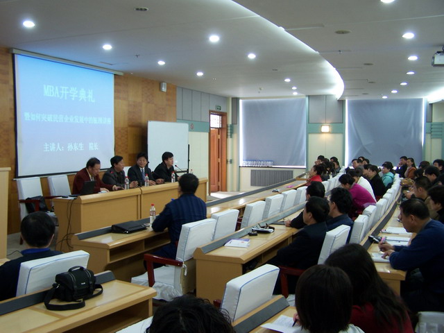 典禮在我校西主七樓學(xué)術(shù)報告廳舉行,與會人員包括我院師生及齊市企業(yè)界人士。經(jīng)管學(xué)院黨委書記李玉山同志、副院長王維同志參加了開幕儀式并分別作了講話,教師代表和學(xué)員代表均作了發(fā)言。簡短的開學(xué)儀式結(jié)束后,本屆MBA學(xué)員們認真聽取了由孫東生教授為他們主講的第一次講座。