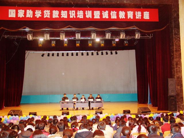 為進一步落實國家助學貸款政策,推動國家助學貸款工作良性發(fā)展,不斷增強學生誠信意識,樹立學生恪守誠信的良好社會形象,11月15日下午,中國銀行股份有限公司齊齊哈爾市分行與我校在學生正式辦理貸款手續(xù)之前于中區(qū)文化宮為大學生舉辦了一場“國家助學貸款知識培訓暨誠信教育”專題講座,進行貸款知識專題培訓和誠實守信教育。