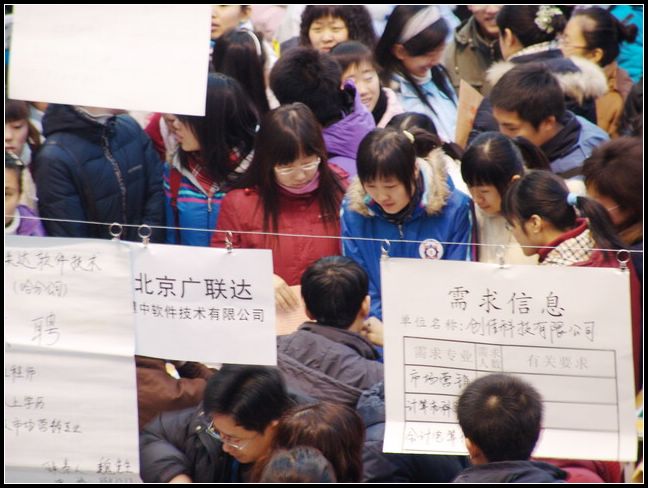 此次進駐招聘的用人單位像北京市紫東環(huán)保水處理藥劑廠、深圳金融聯(lián)投資發(fā)展有限公司、深圳市航嘉集團、江蘇省淮安軍星科技學院、青島獅子王日化有限公司、中國石油大慶石化公司、哈爾濱哈飛工業(yè)有限公司等單位招聘桌前都擠滿了咨詢和投遞簡歷的學生。而教育用人單位本次前來招聘的特點是民辦院校偏多,教育部教育管理信息中心技術人才北京培訓基地、江西省會昌私立英才學校等單位的招聘展位前也擠滿了應聘的大學生。我市的瑞盛集團、廣發(fā)集團、夙生律師事務所等單位的招聘攤位前也擠滿了求職的大學生。