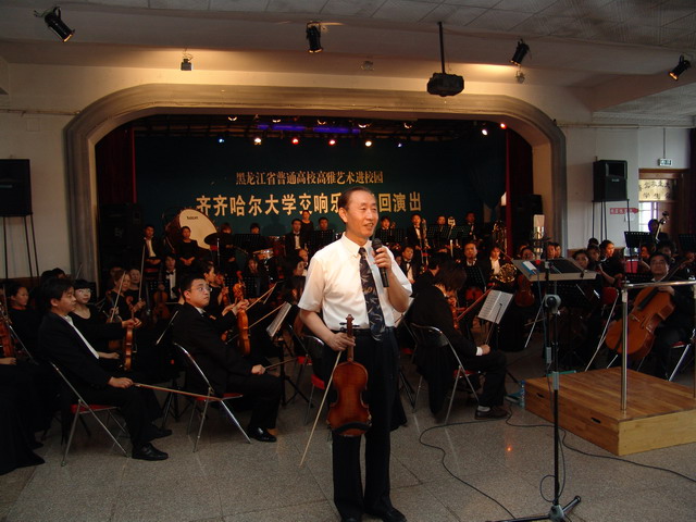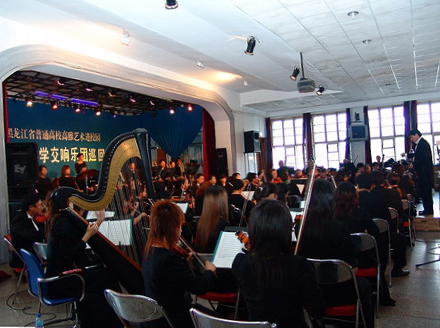 6月24日下午4點(diǎn),東北農(nóng)業(yè)大學(xué)大學(xué)生活動(dòng)中心座無(wú)虛席,掌聲雷動(dòng),我校交響樂團(tuán)承擔(dān)的教育部2006“高雅藝術(shù)進(jìn)校園”交響音樂會(huì)黑龍江省高校巡回演出正在這里隆重進(jìn)行。這是我校交響樂團(tuán)在哈高校巡回演出的最后一站。