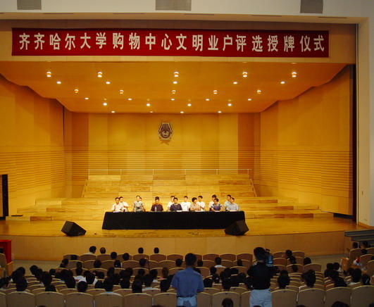 創(chuàng)建文明服務窗口是創(chuàng)建文明校園的有機組成部分。按照《齊齊哈爾大學創(chuàng)建文明單位活動實施意見》和校產(chǎn)總公司創(chuàng)建文明單位活動規(guī)劃,6月25日上午,我校在音樂廳召開購物中心文明業(yè)戶評選授牌大會,副校長張忠恒出席,校黨委宣傳部、校團委、校保衛(wèi)處、校產(chǎn)總公司等單位有關(guān)負責人、購物中心全體業(yè)戶代表、各學院學生代表500余人參加了大會。