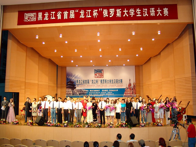 6月10日—11日,作為我省中俄友好“俄羅斯年”重要活動的黑龍江省首屆“龍江杯”俄羅斯大學生漢語大賽在我校音樂廳隆重舉行。此次活動由我校承辦,歷時兩天,于6月12日16:30分落下帷幕。省教育廳副廳長趙敏出席大賽頒獎晚會并致辭,省教育廳國際交流與合作處處長姚洪濱及我校黨政領導陳承貴、唱江華、史鐵成、王鳳琴、張學軍、曲偉建、姜守訓、張忠恒、鄭喜群、呂曉輝等為獲獎選手及單位頒獎。