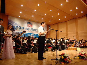 我校校長唱江華在頒獎音樂會上代表學校致辭。