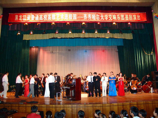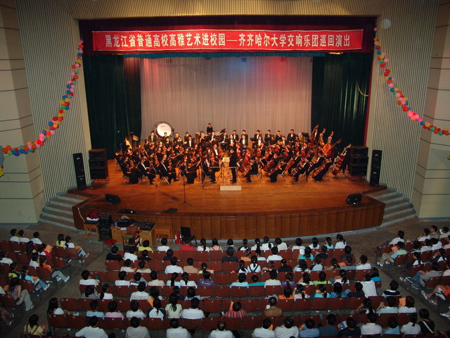 昨晚,我校交響樂團(tuán)在哈爾濱商業(yè)大學(xué)學(xué)生禮堂進(jìn)行了在哈高校的第四場巡回演出。
