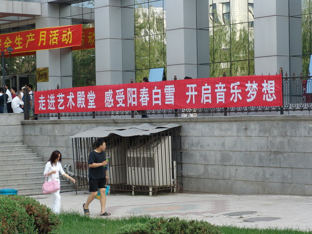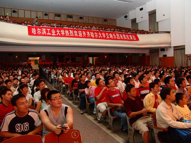哈工大非常重視這次“高雅藝術(shù)進校園”交響樂演出活動,團委提前幾天做了大量的宣傳工作,歡迎條幅和海報掛滿了校園的重要場所。演出當天,哈工大的紫丁香BBS上關(guān)于演出的消息成為當日十大熱帖之一,工大學(xué)生在BBS上留言說“工大缺的就是這個,一定要去看”,還有一位同學(xué)說:“我前幾天在師大已經(jīng)看了一場,感覺非常好,今天一定要去再看一次”。哈工大對于演出的習慣做法是不組織觀眾,師生自愿參加,結(jié)果演出當日不少聽到消息卻沒領(lǐng)到票的觀眾也來到了現(xiàn)場,以致演出開始前主辦者不得不一再提示沒有票的觀眾請盡量往后坐。