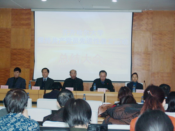 會(huì)上,校黨委副書(shū)記、校長(zhǎng)唱江華代表學(xué)校黨委對(duì)我?!氨3止伯a(chǎn)黨員先進(jìn)性教育活動(dòng)”做了全面系統(tǒng)地總結(jié)。他指出,根據(jù)省委、省委高校工委和齊齊哈爾市委的統(tǒng)一部署,我校先進(jìn)性教育活動(dòng)于7月13日全面啟動(dòng),歷時(shí)5個(gè)月,到現(xiàn)在已完成各階段的工作任務(wù)。經(jīng)市委先進(jìn)性教育領(lǐng)導(dǎo)小組同意,今天我們?cè)谶@里召開(kāi)總結(jié)大會(huì)。幾個(gè)月來(lái),在省委高校工委和市委領(lǐng)導(dǎo)下,在市委督導(dǎo)組的精心指導(dǎo)下,我校黨委認(rèn)真貫徹落實(shí)中央確定的開(kāi)展先進(jìn)性教育活動(dòng)的指導(dǎo)思想、目標(biāo)要求、基本原則和方法步驟,緊緊圍繞學(xué)習(xí)實(shí)踐“三個(gè)代表”重要思想這個(gè)核心,認(rèn)真學(xué)習(xí)貫徹黨的十六屆五中全會(huì)精神,堅(jiān)持高標(biāo)準(zhǔn)、嚴(yán)要求,在狠抓學(xué)習(xí)上下功夫,在邊學(xué)邊改、邊議邊改、邊整邊改、務(wù)求實(shí)效上使實(shí)勁,認(rèn)真解決黨組織和黨員中存在的突出問(wèn)題,扎扎實(shí)實(shí)抓好每一個(gè)環(huán)節(jié),圓滿地完成了各項(xiàng)任務(wù),取得了明顯成效。在群眾滿意度測(cè)評(píng)中,滿意率達(dá)99.79%。