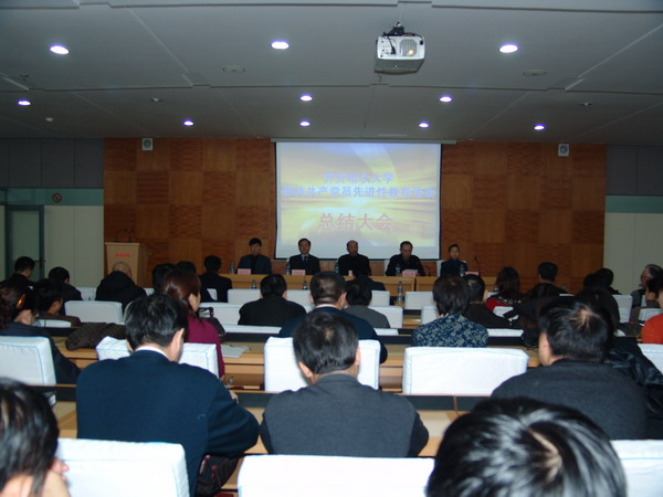 2005年12月21日下午4:00,我校在西區(qū)主樓報(bào)告廳隆重召開(kāi)了“保持共產(chǎn)黨員先進(jìn)性教育活動(dòng)”總結(jié)大會(huì),校黨委副書(shū)記、校長(zhǎng)唱江華,黨委副書(shū)記史鐵成、王鳳琴,黨委常委、紀(jì)委書(shū)記張學(xué)軍,副校長(zhǎng)姜守訓(xùn)、張忠恒,工會(huì)主席呂曉輝,市委第六督導(dǎo)組組長(zhǎng)龍志遠(yuǎn)及其成員出席了大會(huì),各基層黨委(黨總支、直屬黨支部)書(shū)記、正處級(jí)干部、處級(jí)單位主持工作的副職,副處級(jí)單位主要負(fù)責(zé)人,校先進(jìn)辦成員和指導(dǎo)組成員,各單位先進(jìn)辦主任、黨支部書(shū)記及民主黨派負(fù)責(zé)人等參加了會(huì)議,校黨委副書(shū)記史鐵成主持了大會(huì)。