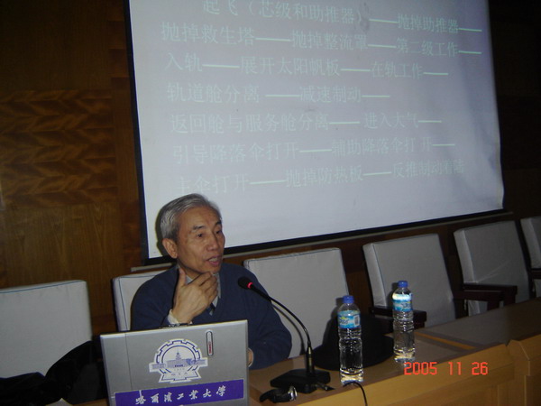 本次學(xué)術(shù)講座的題目為《“神舟號”飛船和載人航天》。劉暾教授介紹了我國載人航天飛船及航天工程所面臨的艱巨任務(wù);載人航天的由來及我國載人航天發(fā)展的歷程:載人航天工程的組成和“神舟號”飛船飛行過程;酒泉發(fā)射中心和航天指揮中心和航天工程的三步走計劃,同時他還為同學(xué)們展示了神舟二號和三號飛船飛行過程的圖片,使同學(xué)們在感性和理性上對航天飛船有了進(jìn)一步的了解。在講到“神舟號”飛行過程的時候,劉教授借助文字與動畫相結(jié)合的手段,讓同學(xué)們對載人航天飛船的飛行過程有了更全面、更直觀的了解。最后,劉教授介紹了他們研究組所承擔(dān)的有關(guān)“神舟號”的科研項目。講座現(xiàn)場座無虛席,歷時2個小時,在全場熱烈的掌聲中圓滿結(jié)束。
