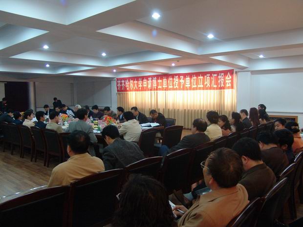 5月16日,省教育廳副廳長(zhǎng)趙敏和以省學(xué)位委員會(huì)副主任委員吳林教授為組長(zhǎng)的9位專家組成的黑龍江省新增博士學(xué)位授予單位立項(xiàng)評(píng)估專家組及省學(xué)位辦劉雪松處長(zhǎng)、李傳威副處長(zhǎng)等蒞臨我校,對(duì)我校申報(bào)新增博士學(xué)位授予單位立項(xiàng)進(jìn)行了評(píng)估。校領(lǐng)導(dǎo)陳承貴、唱江華、王鳳琴、張學(xué)軍、曲偉建、姜守訓(xùn)、張忠恒、鄭喜群、鄧啟剛、呂曉輝等出席匯報(bào)會(huì)并與專家組交換了意見;我校研究生處、科研處等職能部門負(fù)責(zé)人、各有關(guān)學(xué)院負(fù)責(zé)人、學(xué)科帶頭人等參加了匯報(bào)與座談會(huì)。