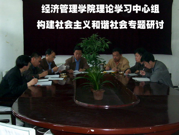 6月3日上午,經(jīng)濟(jì)管理學(xué)院理論學(xué)習(xí)中心組在會(huì)議室召開構(gòu)建社會(huì)主義和諧社會(huì)專題學(xué)習(xí)研討會(huì)議,學(xué)院黨委成員出席了學(xué)習(xí)會(huì)。